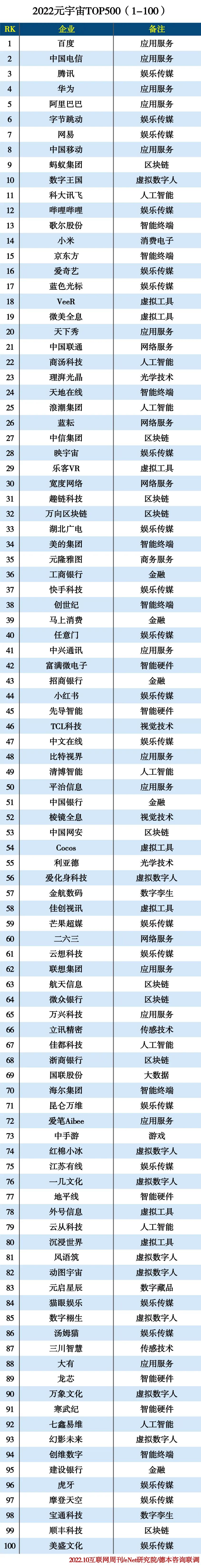 抽丝剥茧伴随着“元宇宙可能是互联网下一个篇章”的预言,无论是科技行业还是其他行业的公司,都看到其不菲价值,纷纷跳入元宇宙,希望能将自己的业务或资产开拓到这个新的世界。“元宇宙(Metaverse)”这个词不管看起来是稀奇还是熟悉,已经是遍地开花。海外公司最先开始行动,一众科技巨头先后表示出对元宇宙的兴趣,2021年初,“元宇宙第一股”Roblox在纽交所上市;同年10月,Facebook正式更名为Meta,转向专注于虚拟现实为主的新兴计算平台;紧随其后,微软宣布正式入局元宇宙、探索元宇宙技术……国内市场对元宇宙也充满好奇,从各大互联网公司布局元宇宙板块,到游戏、AR/VR、硬件终端、传媒社交或者商业营销等企业都推出元宇宙业务,再到只要能沾边元宇宙的上市公司在股票市场一路飘红,一时间,元宇宙的生态似乎已经十分繁荣。但究竟什么是元宇宙?目前的定义还在不断更新、完善。在技术层面,“元宇宙”被认为是互联网、大数据、云计算、人工智能、区块链以及虚拟现实、增强现实等技术的集大成者,具有拓展现实、虚实交互等特性,并且随着“元宇宙”的深入发展,还将助推这些技术实现进一步突破。在应用层面,则是新技术概念的具化,数字技术与物理世界相结合,将现实世界在虚拟空间进行投射,打造出一个技术集合体构建的与现实世界平行的虚拟世界。既然是平行的虚拟世界,那么现实世界中包含的元素,在虚拟世界也会存在,因此元宇宙还意味着一个庞大的产业,这其中既包含了网络建设、硬件产品、智能终端等基础建设企业,也包含了人工智能、图像感知、数字孪生、协同计算等技术服务企业,更包含了虚拟数字人、数字藏品、娱乐文化等应用型企业,基于如此广阔的覆盖面,元宇宙的出现为商业、消费者带来更多机会。目前,企业对元宇宙的布局,集中在区块链、数字藏品(NFT)、虚拟人、文娱互动等主题。2022年就被称为是虚拟数字人爆发元年,有着对话和互动能力的超写实虚拟人迅速崛起,如数字王国、百度、芒果超媒等企业打造并发布的娱乐型、服务型数字人,出现在人类生活的方方面面。同样大火的还有数字藏品(NFT),不断有国内互联网大厂以及科技、文化艺术公司从交易机制、上链方式、IP资源等维度开发数字藏品平台,鲸探、阿里拍卖、唯一艺术相继上线,以技术开发新一轮的商业价值。并且如今各类消费品牌也开始创制自己的NFT作品或定制虚拟代言人、数字员工,以期起到品牌宣传、话题制造或跨界营销的作用。而在设备与技术方面,元宇宙最热门的行业集中在VR/AR设备、人机交互、视觉感知等技术。2015~2016年,VR/AR行业一度爆火,但产品的不成熟导致其难以商业化落地,技术的瓶颈让整个赛道行情急转直下。但现在,字节跳动收购VR创业公司Pico(小鸟看看)开始元宇宙布局,VR内容的热度随之上升,VR头显、VR游戏出现在微博、抖音、节目广告等尽可能多的平台上。此外,还有网易“瑶台”、百度“希壤”问世,定位元宇宙基础设施技术平台,主打虚拟空间定制、形象定制、场景视觉等功能,希望能将展会、会议、营销等活动引入到线上立体的虚拟世界,营造全新的线上活动系统。除了一众新兴企业、产业,如中国电信、科大讯飞、京东方等传统企业也在加码元宇宙业务,云计算、人工智能、5G网络建设以及云网融合技术对新需求形成支撑,以基础硬件、零部件等产品和智能计算、情感AI等技术融合构成元宇宙时代的重要新型基础设施。基于以上种种,有人戏称,“元宇宙是个筐,什么都能往里装”。的确,从企业产业与主营业务来看,现在并不存在一个或多个纯粹的元宇宙企业。在国内,互联网科技大企率先入局,也带动软件、硬件厂商进行相关产品研发和技术储备,但各企业触及的也仅是这个世界中略有差异的一角,元宇宙全貌还需进一步的探索。但这也表明,现代企业对元宇宙的认知与创造构建,是许多项既有个性也有协同性的系统工程,不是仅一家企业或一个产业就可以完成的,元宇宙的出现无疑为企业提供了新的增长可能,不可否认,未来或将催生更多的创新与外延。