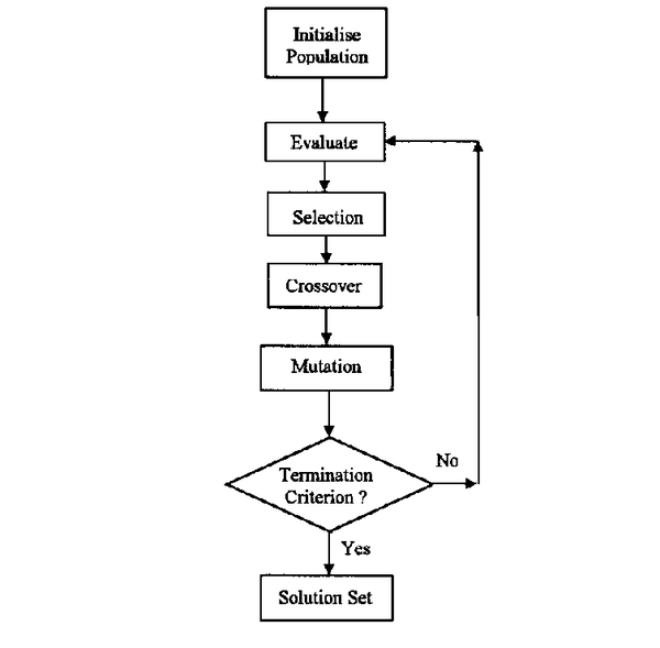 典型算法的单循环基本上是从初始选择,经过交叉,依次到变异。 如果结果不符合标准,算法循环将重新开始,使用新的后代作为染色体的初始种群。 下图显示了 GA 的工作逻辑。