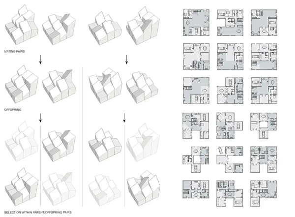 下面的示例显示,Nathaniel Louis Jones 使用 GA 作为进化工具来创建更适合的一代房屋,这些房屋按照明、供暖和功能标准进行排名。 “经过几次算法运行后,架构师有许多合适的设计选项可供选择…… GA 发现的一些解决方案以其机器创造力的展示而著称,即使没有人类智能,这些适应性似乎也经过深思熟虑。”,N. Jones 说。¹¹