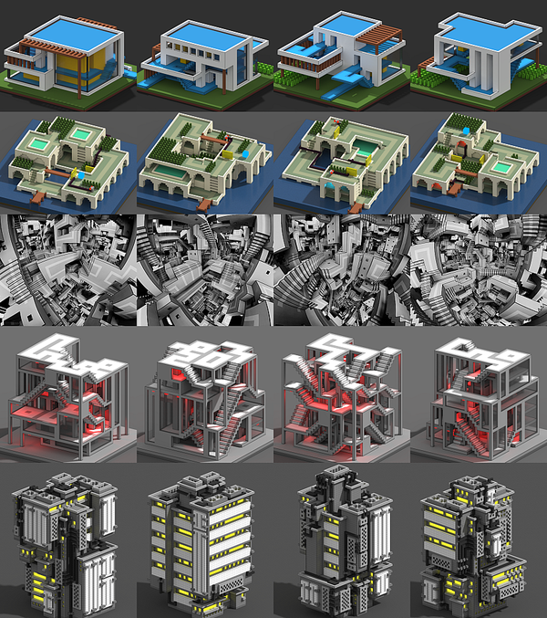 在本篇小作文中,从Christopher Alexandar的模式理论出发,到生成艺术和人工智能的具体操作,我尝试着勾勒出3D 设计系统的框架。