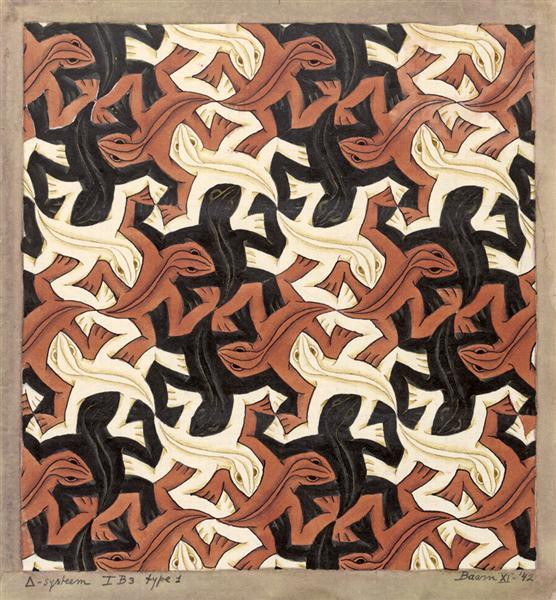 在建筑中,镶嵌自古以来就被用来创造装饰图案。 马赛克瓷砖通常有几何图案。 镶嵌经常出现在 M. C. Escher 的图形艺术中; 他在 1936 年访问西班牙时受到摩尔人在阿尔罕布拉宫等地使用对称性的启发。⁹