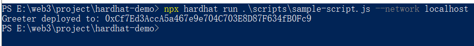 打开另一个 Terminal/PowerShell,执行 npx hardhat run .\scripts\sample-script.js –network localhost: