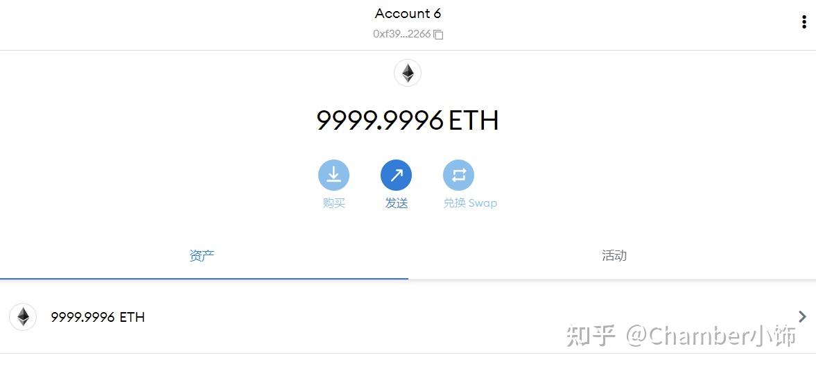 部署合约需要消耗 gas,所以可以看到第一个账户中的余额不再是 10000 个 ETH 了(默认使用第一个账户来操作):
