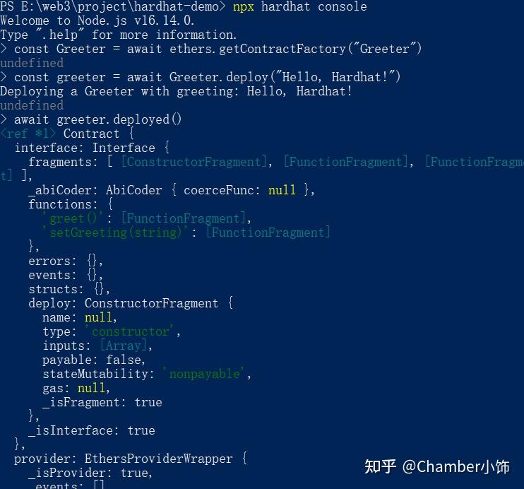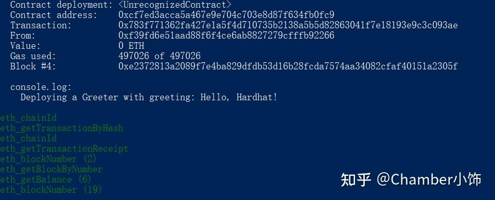 在部署合约时,会执行 constructor 构造函数,所以 console.log(“Deploying a Greeter with greeting:”, _greeting); 这句被执行并打印出来。