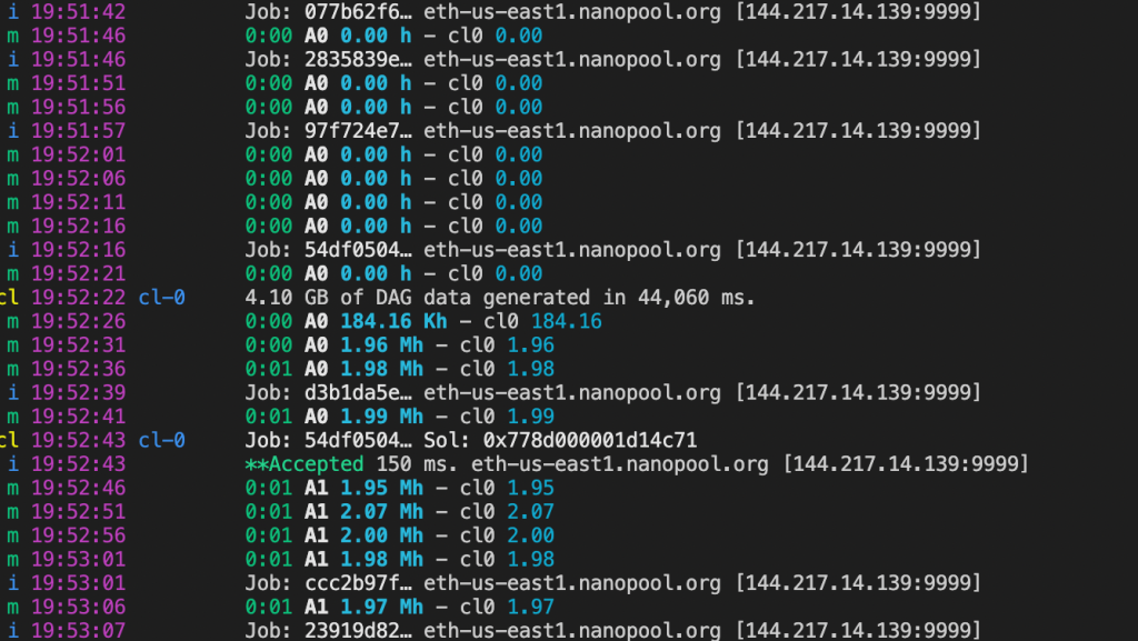 Yifan Gu 在个人博客中展示了挖矿的全部过程,在 M1 Mac 上运行 Ethereum 软件,哈希率是 2Mh/s。