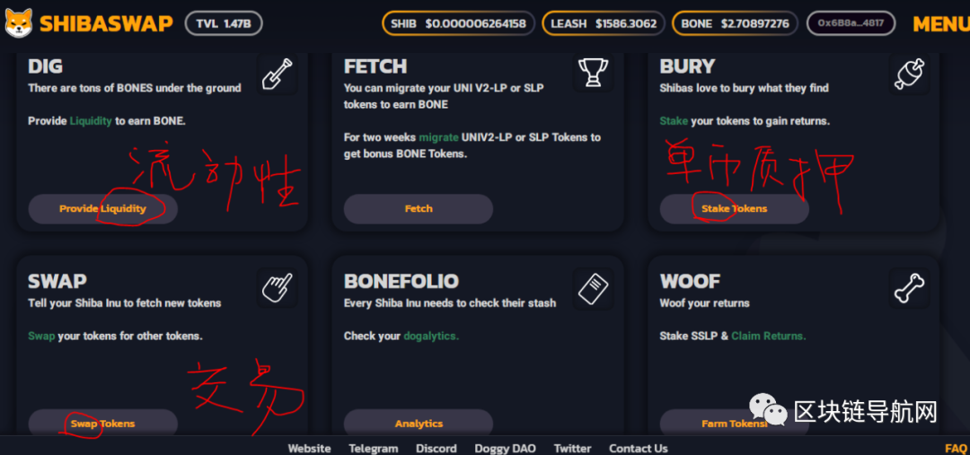 ShibaSwap自本月7日上线以来,质押总量增长了10倍左右,ShibaSwap作为Meme系有代表性的交易所,也引起了众多关注。如何玩转shibaswap?市场上相关教程较少,现应粉丝要求,特分解一下质押挖矿流程。