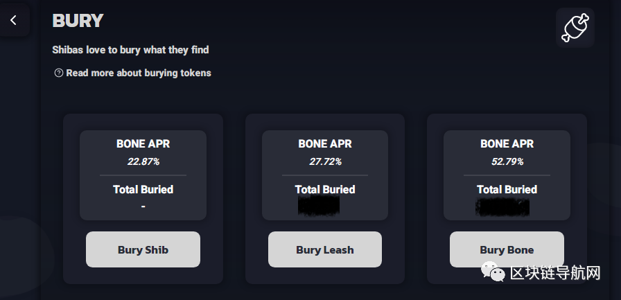 5,Bury单币质押:从下图来看,目前单币质押挖Bone的收益比:Bone最高,其次Leash,最后为Shib。