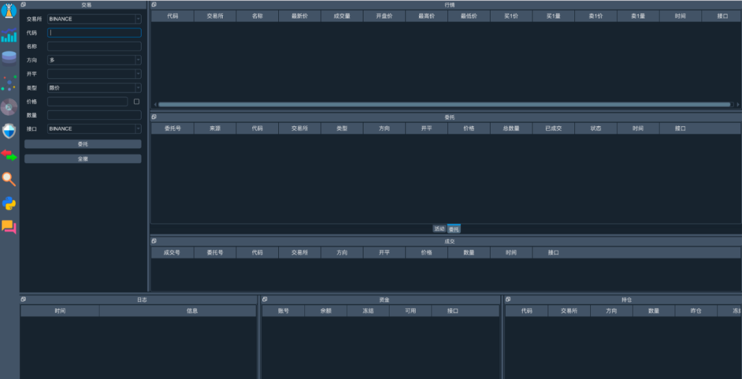 运行run_window.py文件,即可启动图像界面回测。启动成功后,整个界面如下所示。