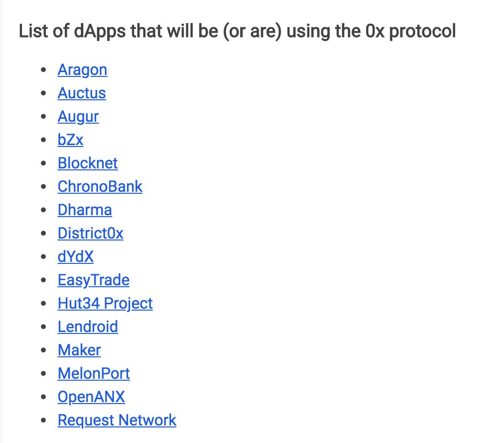 已有 16 个去中心化交易所使用 0x 协议 ,落地情况较好。