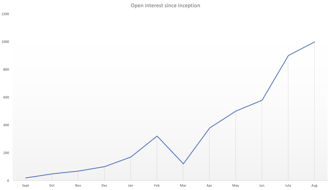 USDT保证金永续合约是我们获得成功的关键。年初时,我们只有三种合约 – BTCUSDT、ETHUSDT、BCHUSDT。今天,USDT保证金合约产品线有超过51种合约,8月份日交易量更是超过了60亿美元。