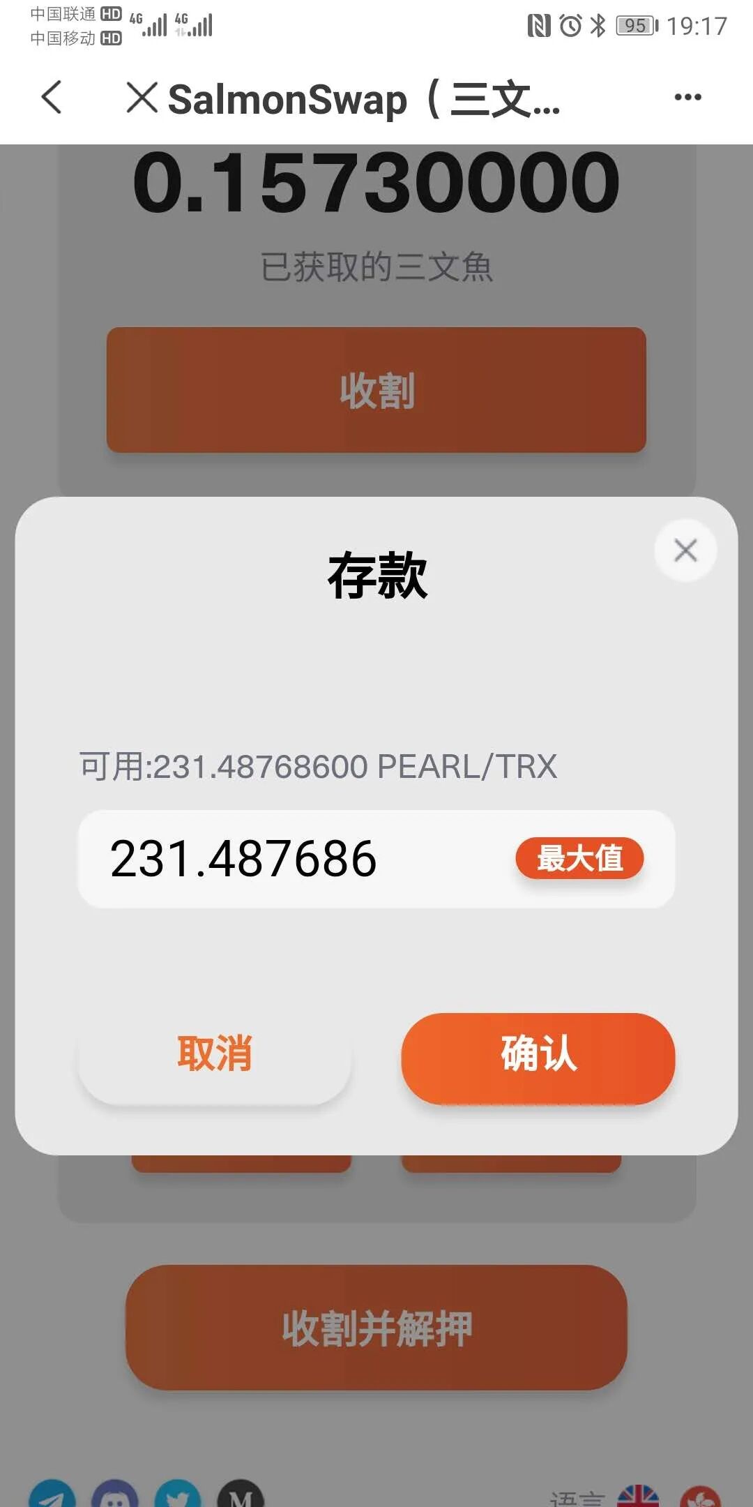 三文鱼的挖矿方式与sushi基本一致,通过去justswap质押流动性来三文鱼挖矿,目前开通的挖矿效率明显比其他两个矿池高很多。
