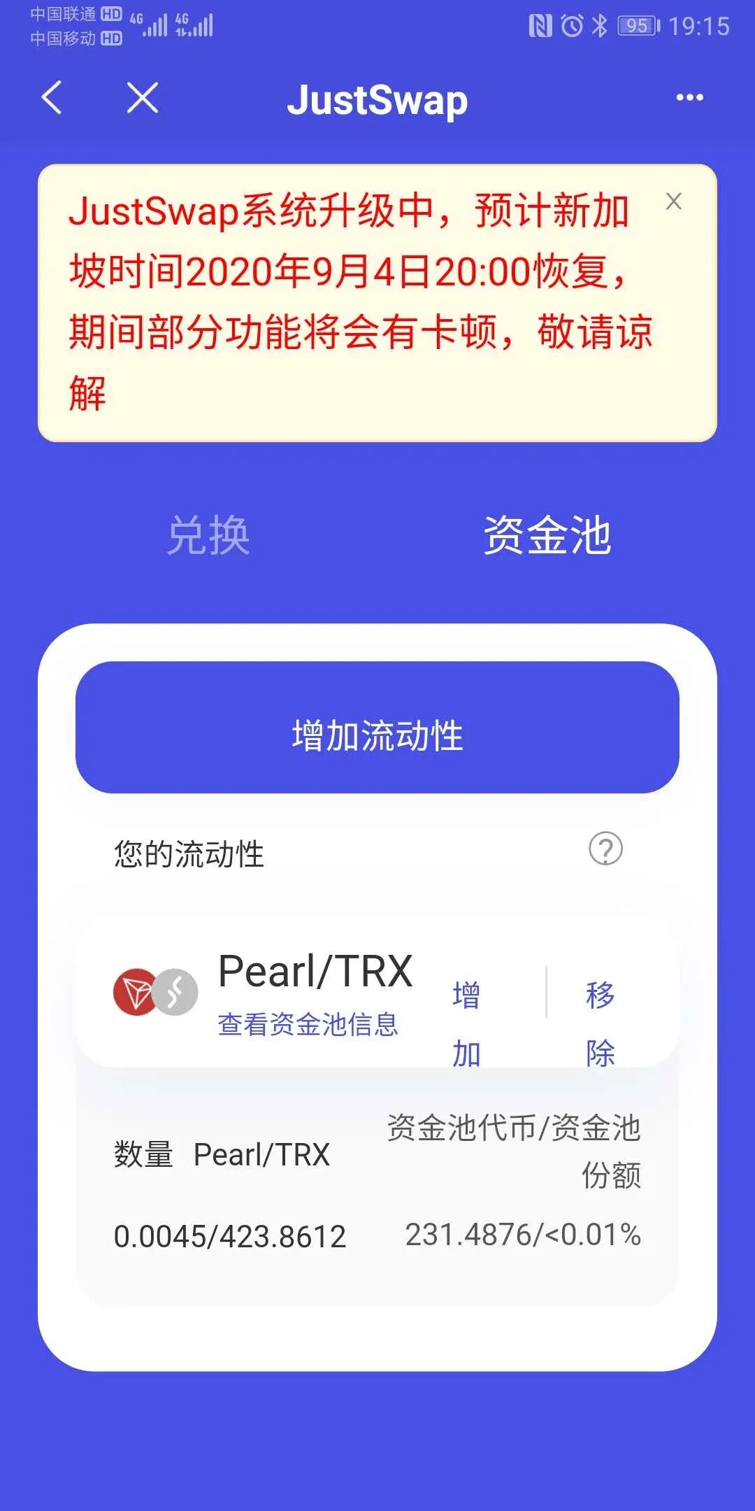 第一步:准备等价值的TRX和PEARL或者TAI或者SAL (本文以PEARL为例子)。