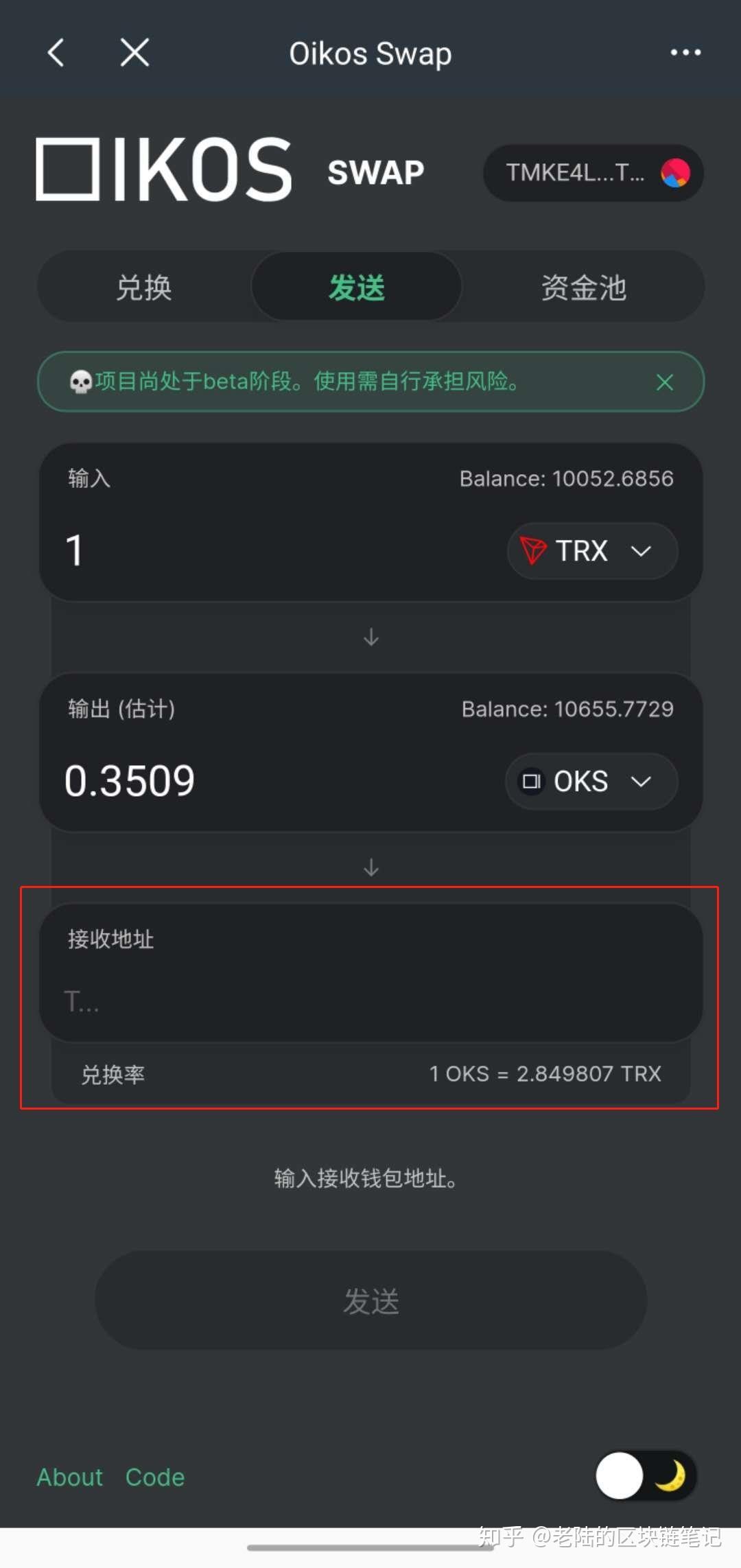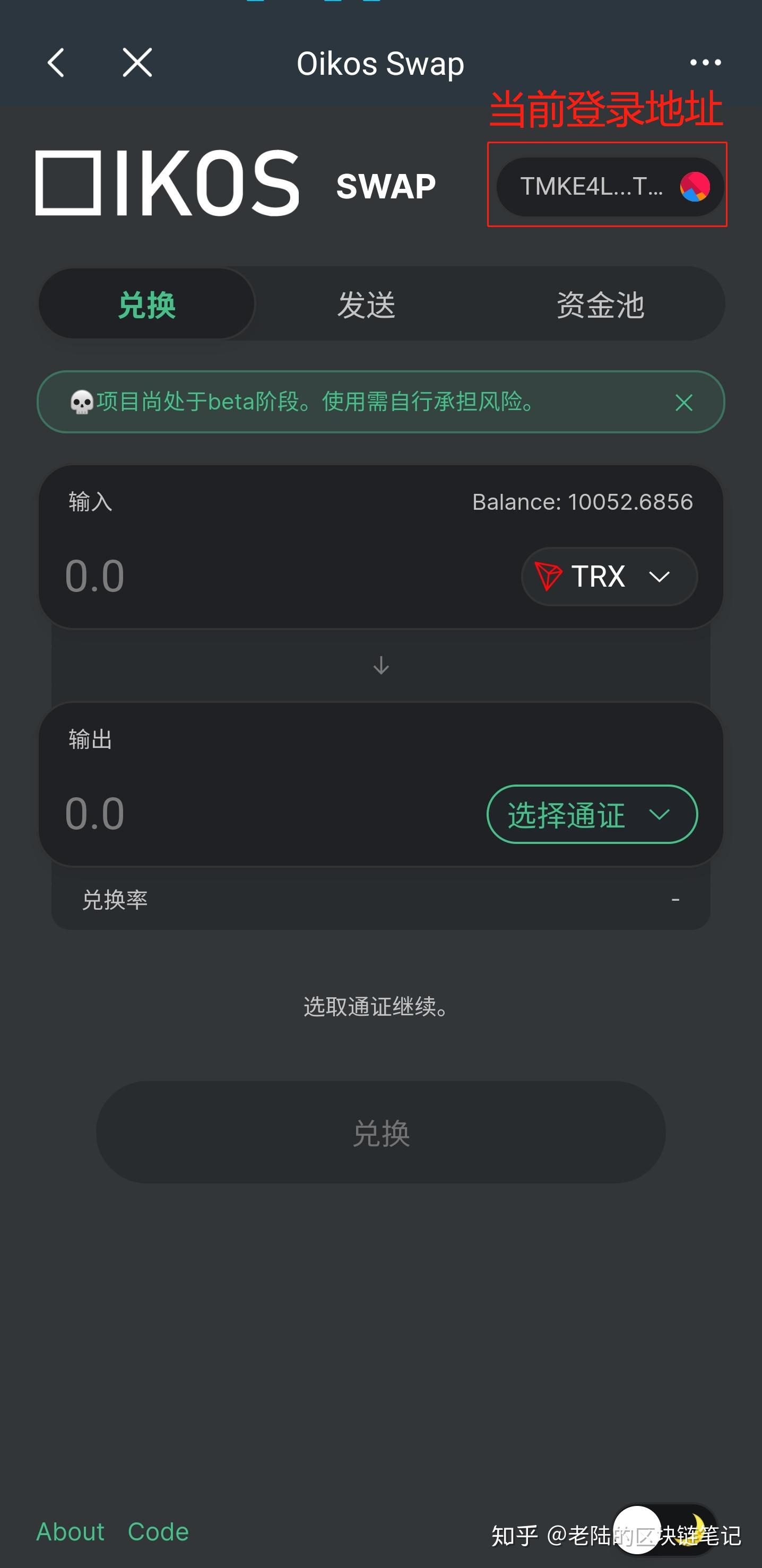 1.电脑打开交换平台网址:https://swap.oikos.cash