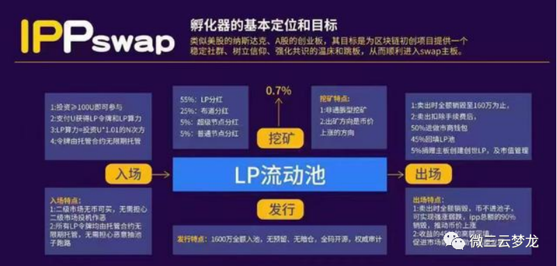 “ippswap”是一个基于区块链技术的孵化器平台,它的目标是为优秀的项目提供流量、社群、共识和资金的支持,从而为项目顺利进入Swap主板奠定坚实基础。