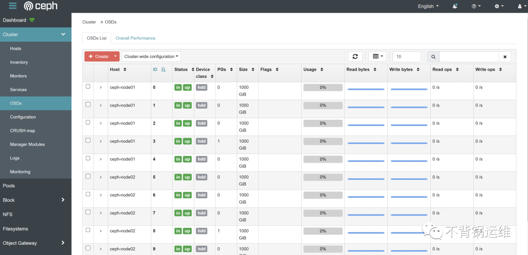 9 ceph-node02 1030M 998G 0 0 0 0 exists,up