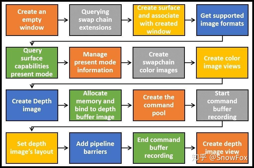 在本节中,我们将汇总交换链创建以及构建展示窗口的过程,由两部分组成:初始化和渲染。