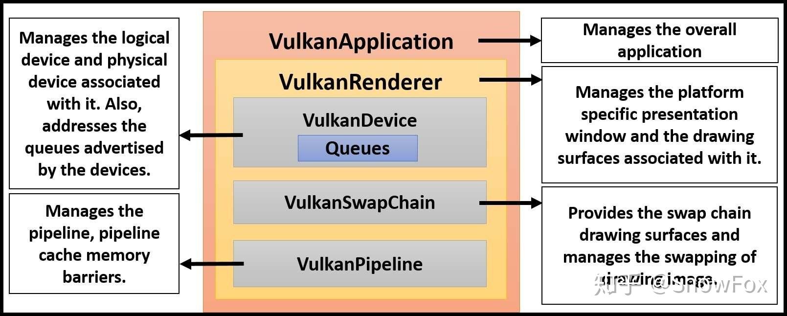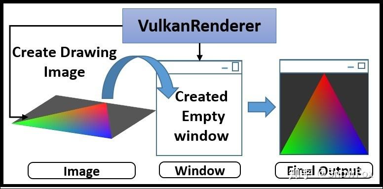 首先,VulkanRenderer 初始化展示窗口并创建本机平台特定的空窗口(500 x 500)。 窗口会渲染交换链的前端缓冲区绘图图像。 接下来,它会初始化交换链,以符合交换链的先决条件。 交换链图像视图布局是使用命令缓冲区(它们是从预分配的命令缓冲池分配的)创建的。