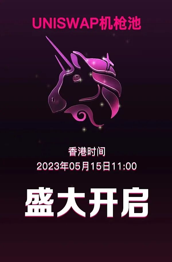 全球首个去中心化交易所Uniswap 即将于香港时间2023年05月15日正式推出旗下生态 Uniswap 机枪池。