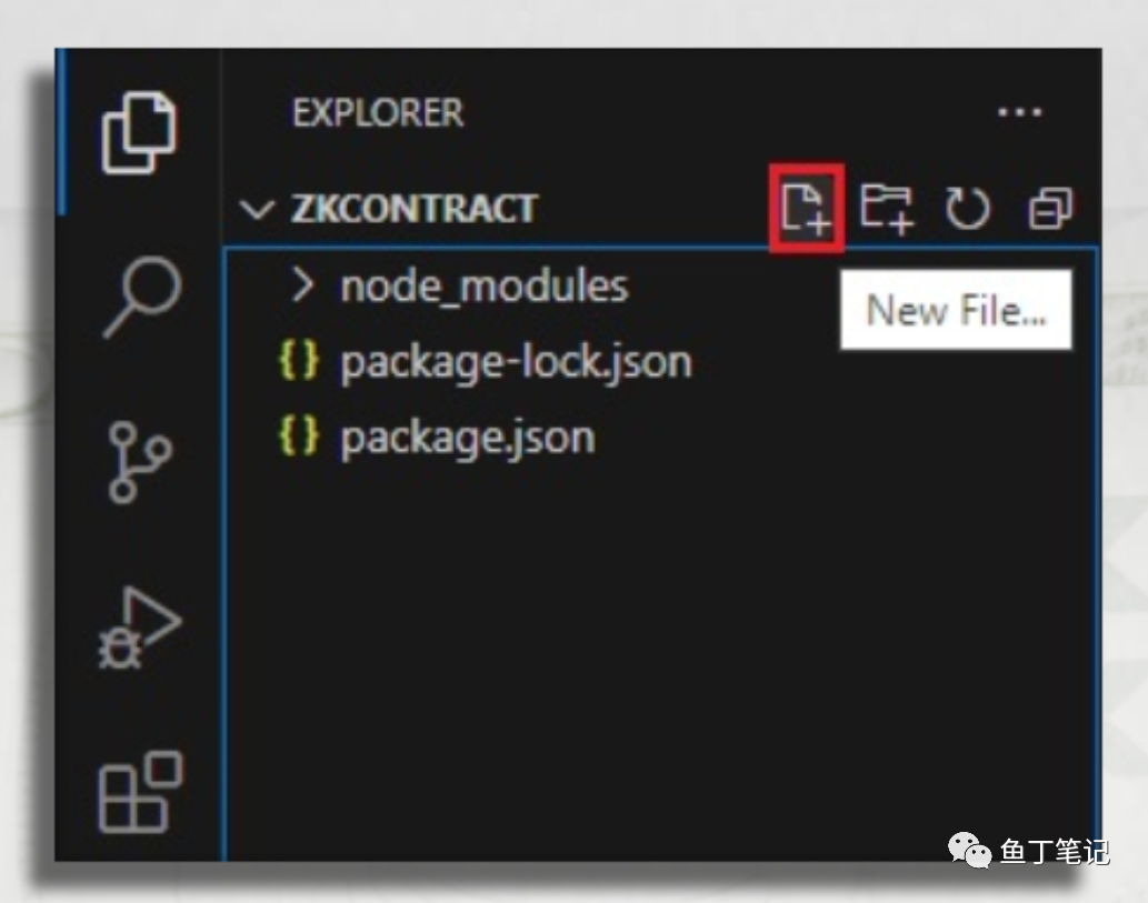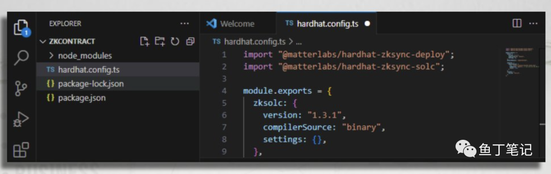 7、通过点击屏幕截图中的按钮,在文件夹中创建一个名为 “hardhat.config.ts” 的文件。