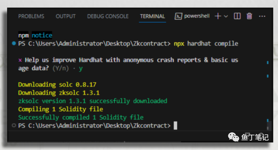 21、回到终端,输入 “npx hardhat deploy-zksync”。