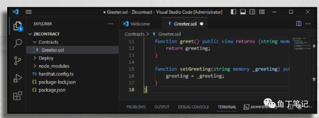 11、在您刚创建的 “contracts” 文件夹中,创建文件 “Greeter.sol”。