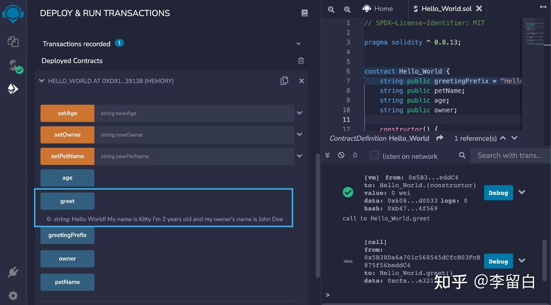 在这一步中,我们将编写一个Hello_World智能合约,将宠物的信息存储在区块链上,并返回以下语句: