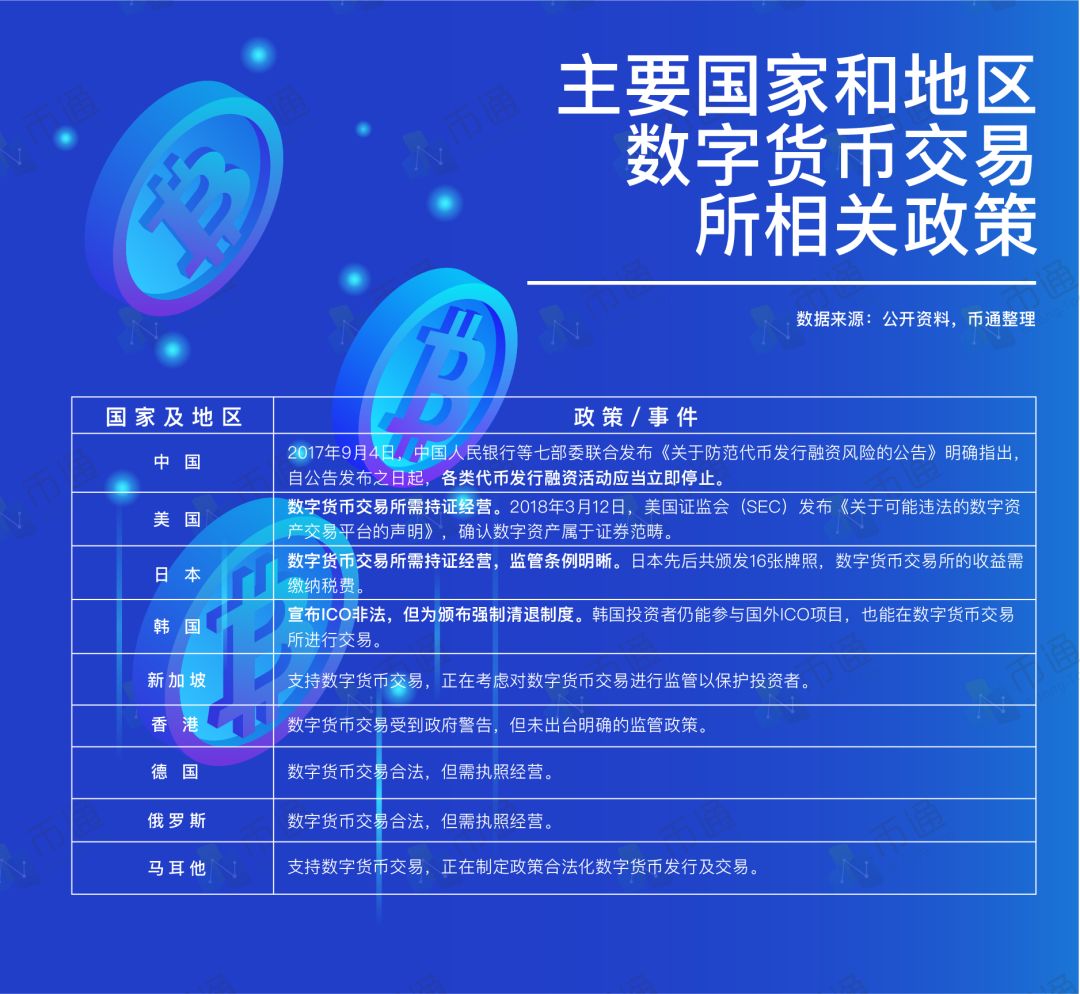 此后,OKCoin、火币、BTCC等交易所暂停比特币提现,被迫出海求生,市场份额随之大幅下降。下表为主要国家及地区政策汇总: