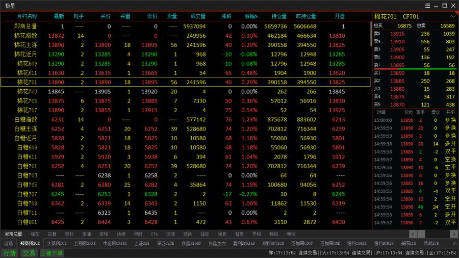 易盛极星客户端提供的内盘期货数据直接来源于交易系统网关。同时,易盛还提供郑商所5档深度行情,为用户进行技术分析提供坚实基础。投资者通过易盛极星下的交易订单直发期货公司交易前置,无中间过滤服务器,更快速、不泄露。