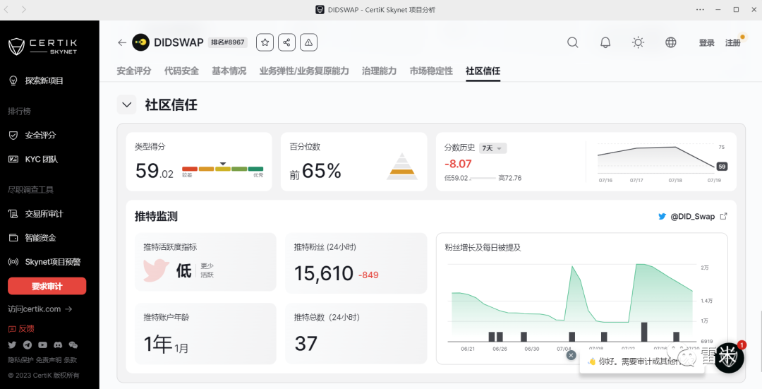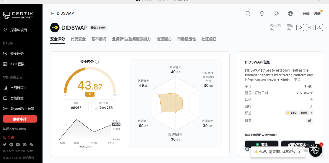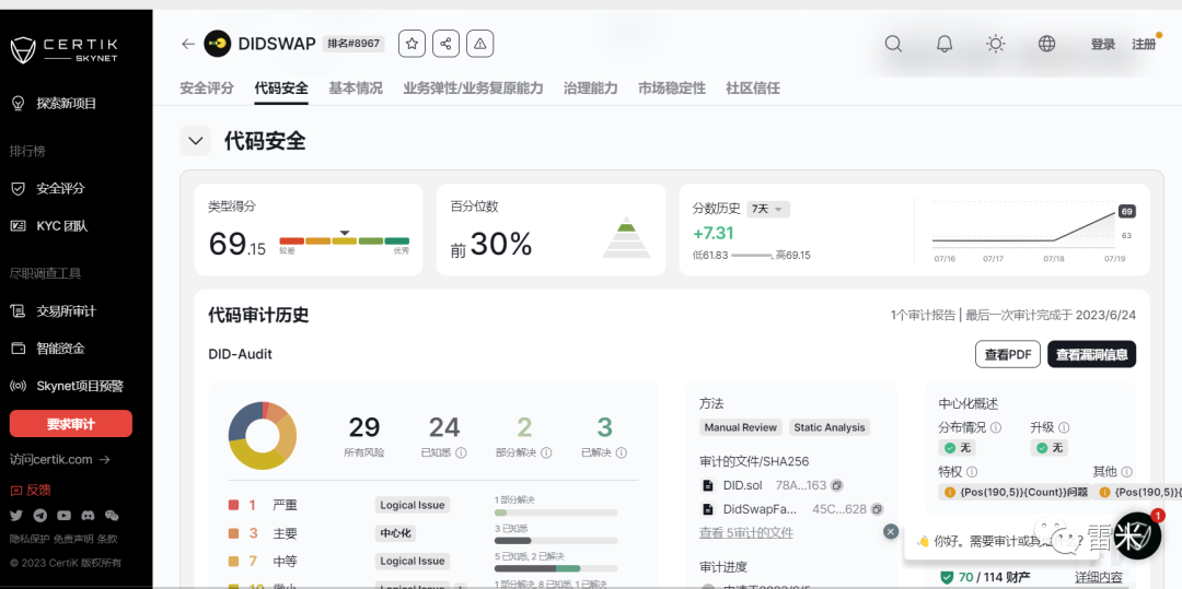 DIDSWAP市场公开推广资料中显示的审计报告