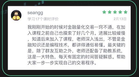 一位小白学员表示学到熟练使用编程,只花了2个月时间,并将之运用到日常工作中。还有一位设计师O编程基础,却在一个多月后,开始开发自己的交易系统,实盘来赚取收益。