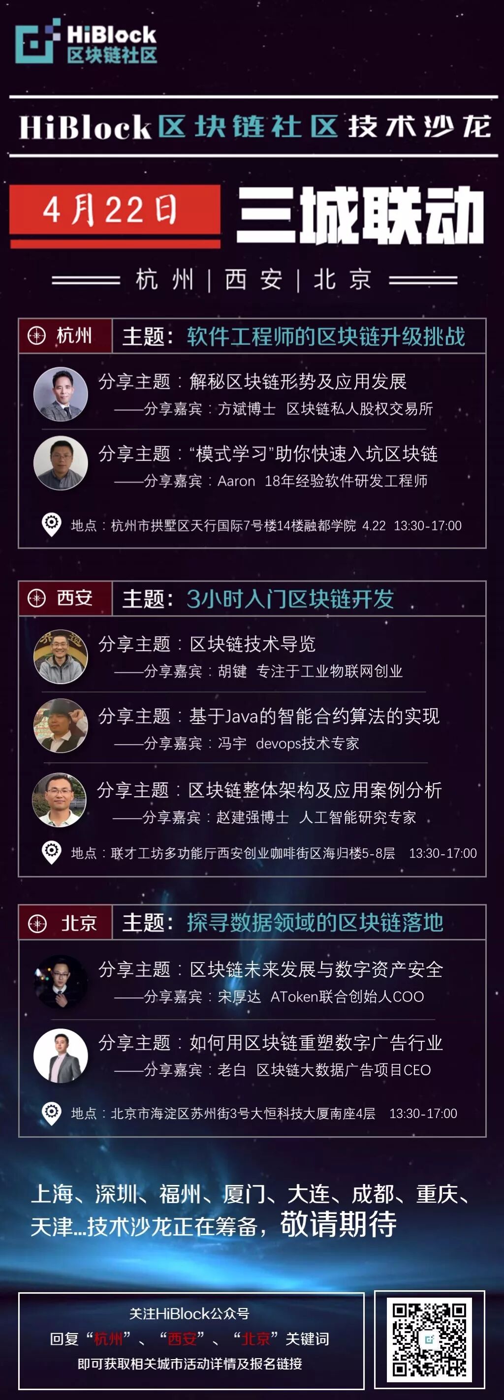 4月22日,北京、西安、杭州三地同时举办线下沙龙,在公众号回复城市名可了解活动详情,也可以直接报名哦~