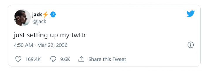 2021年3月,推特CEO Jack Dorsey把他2006年发布的首条推文以NFT形式拍卖售出。