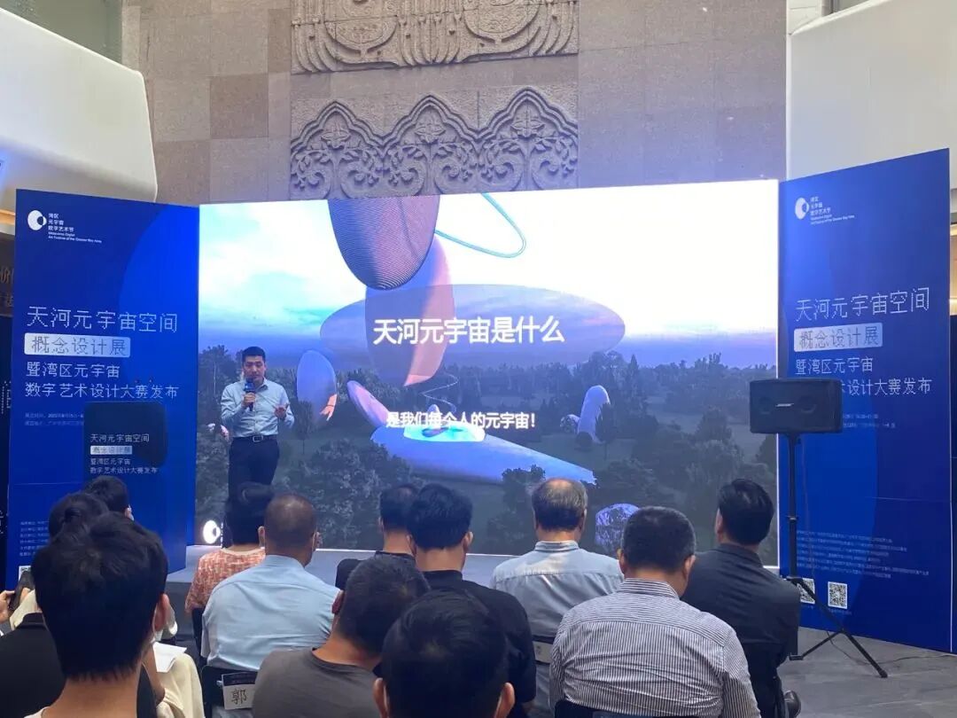 活动上,首个城市级别元宇宙系统天河元宇宙亮相,天河元宇宙空间概念设计展开幕,湾区元宇宙数字艺术设计大赛三大赛道正式启动。