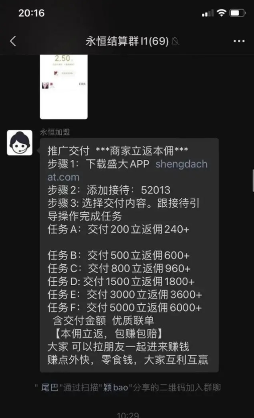 2020年5月,被害人胡某某看到微信好友林某在朋友圈推广一个投资理财APP,宣传“保本理财、爆仓必赔”。2020年6月,胡某某怀着试一试的想法,用手机和身份证、银行卡注册账号,投资人民币3.6万余元,随后,林某把其拉进一个盛大合约VIP微信群,群里有300多人,群领导为杨某纤,群里的人每天都晒投资金额及收益,杨某纤还经常发截图,有多少新会员入金、每天能获利10万余元,还晒出自己买的保时捷跑车。
