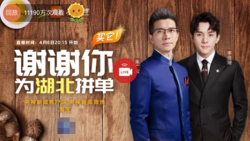 4月6日,朱广权与李佳琦为湖北地区做公益直播卖货