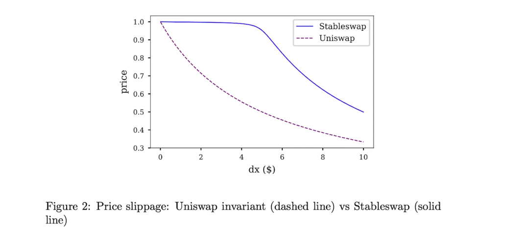 Uniswap CPMM 模型是AMM的一次范式转变,原因有几个。首先,它是第一个将中间人完全移除的去中心化交易所,第二,实现了流动性、快速交易与链上机制的结合,能以正确的价格进行报价,这是革命性的,当然最令人印象深刻的是,完成这些仅仅用了约 300 行代码。自推出以来,Uniswap 一直是迄今为止使用量最大的 DEX。数据来源:Dune Analytics ,@hagaetc恒定积做市商 (CPMM) 的缺点尽管 Uniswap 和初代的 CPMM 让 AMM 取得了非常大的进步,但仍然存在一些缺陷,比如:滑点、无常损失和安全风险。滑点即订单的预期价格与订单实际执行的价格存在差异。鉴于加密货币的波动性,每个代币的价格会因为交易量和活动而产生波动。最常见的是,流动性小或突然面临大交易量的资金池更容易受到滑点的影响。滑点百分比显示特定资产的价格在整个交易中偏移了多少,同时也代表了用户对滑点的容忍度。无常损失是你存入流动资金池中的资产价格所发生的变化。鉴于流动性池之外发生的价格波动,存入了流动性池的用户(储户)会面临潜在收益的损失。当资产价格变化越大,储户面临的无常损失就越大。因此,就无常损失而言,稳定币的风险要小得多,无常损失之所以得名,是因为损失确实是无常发生的,但我更喜欢说发散损失(divergence loss)。影响 CPMM 的其他风险主要来自智能合约、平台及其内存池中的固有安全风险。随着生态系统的成熟,安全性和MEV的预防也随之提高,一般来说,任何进入去中心化金融的人都应该准备好遭受财务损失准备,毕竟这个行业还处于非常早期的阶段。