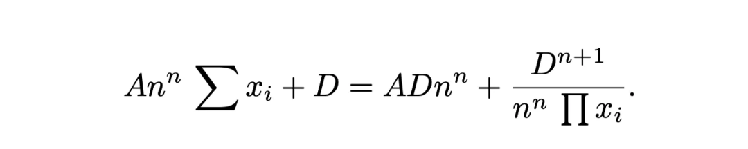 Curve Finance将传统的CPMM和CSMM相结合,创造了混合型CPMM,也被称为Stableswap(译者注:Stableswap兼具了恒定和的低滑点以及恒定积的无限流动性特点),其中,Curve提出了一个先进的公式,该公式可以创造指数级的密集流动性,这条曲线的大部分属于线性汇率,具体公式如下:其中x是每种资产的储备量,n是资产的数量,D是不变量(储备中的总值),A是放大系数(类似于“杠杆”,代表了曲线的弯曲程度)。