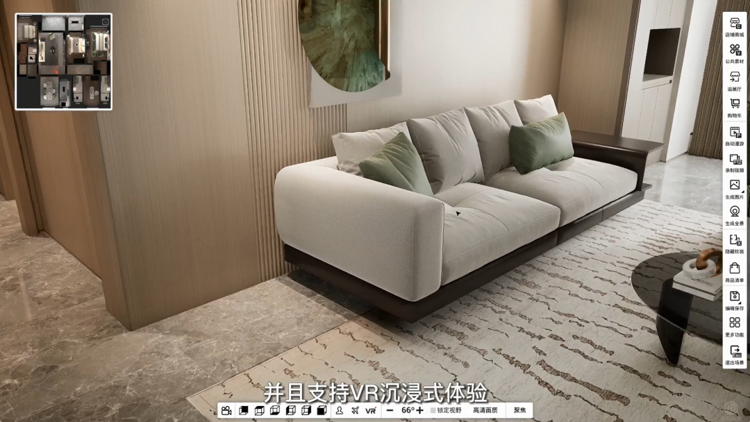 3D实景效果,VR沉浸式体验 “南康城发·家居美学馆家居元宇宙营销系统”通过系统上3D实景效果来呈现设计方案,大幅提高效果,让客户获得更佳的体验感和信任度。此外,系统还支持VR沉浸式体验,设计方案场景1:1还原实景效果,客户戴上VR眼镜后可以在场景中自由行走,享受前所未有的家装3D设计效果。这种时尚又好玩的沉浸式场景不仅提升了门店的服务水平,还能让客户提前预见装修效果,先模拟再入住,有效降低装修试错成本,避免入住后留下遗憾。系统还支持实时互动式谈单,进一步增强客户的信任度和体验感,让客户在设计过程中更加参与和满意。